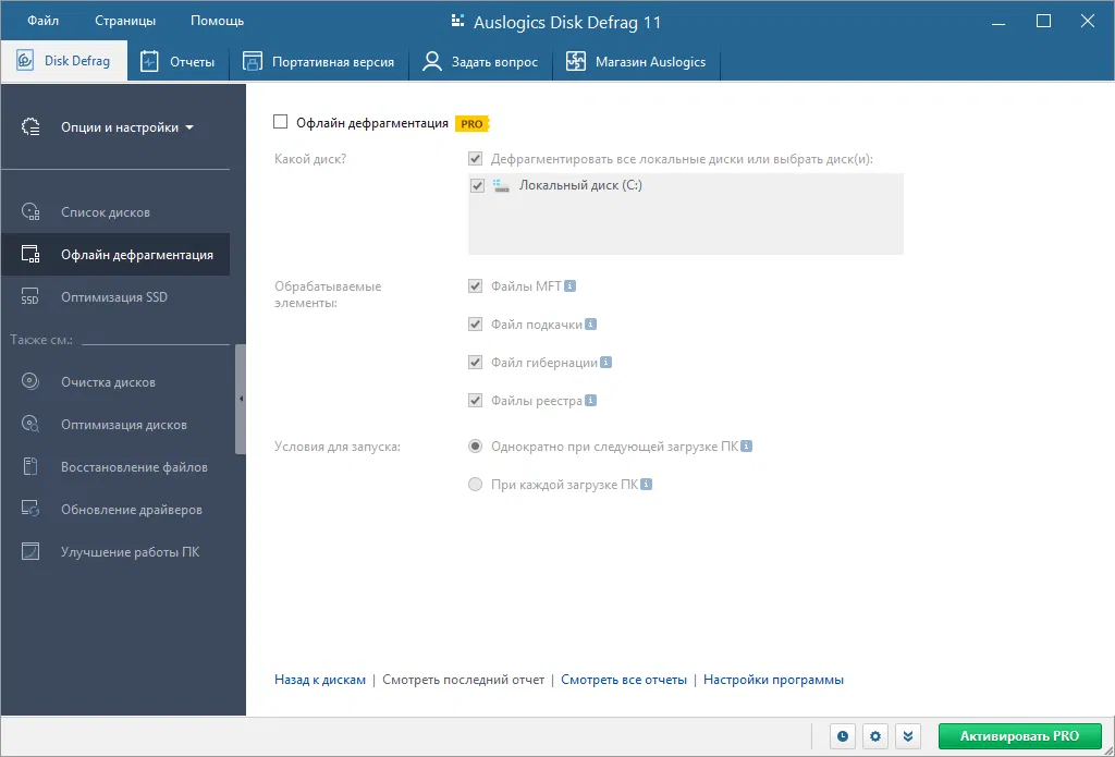 Скриншоты Auslogics Disk Defrag