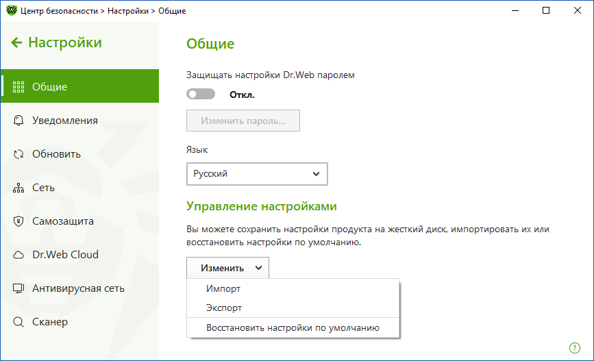 Скриншоты Dr.Web Security Space для Windows