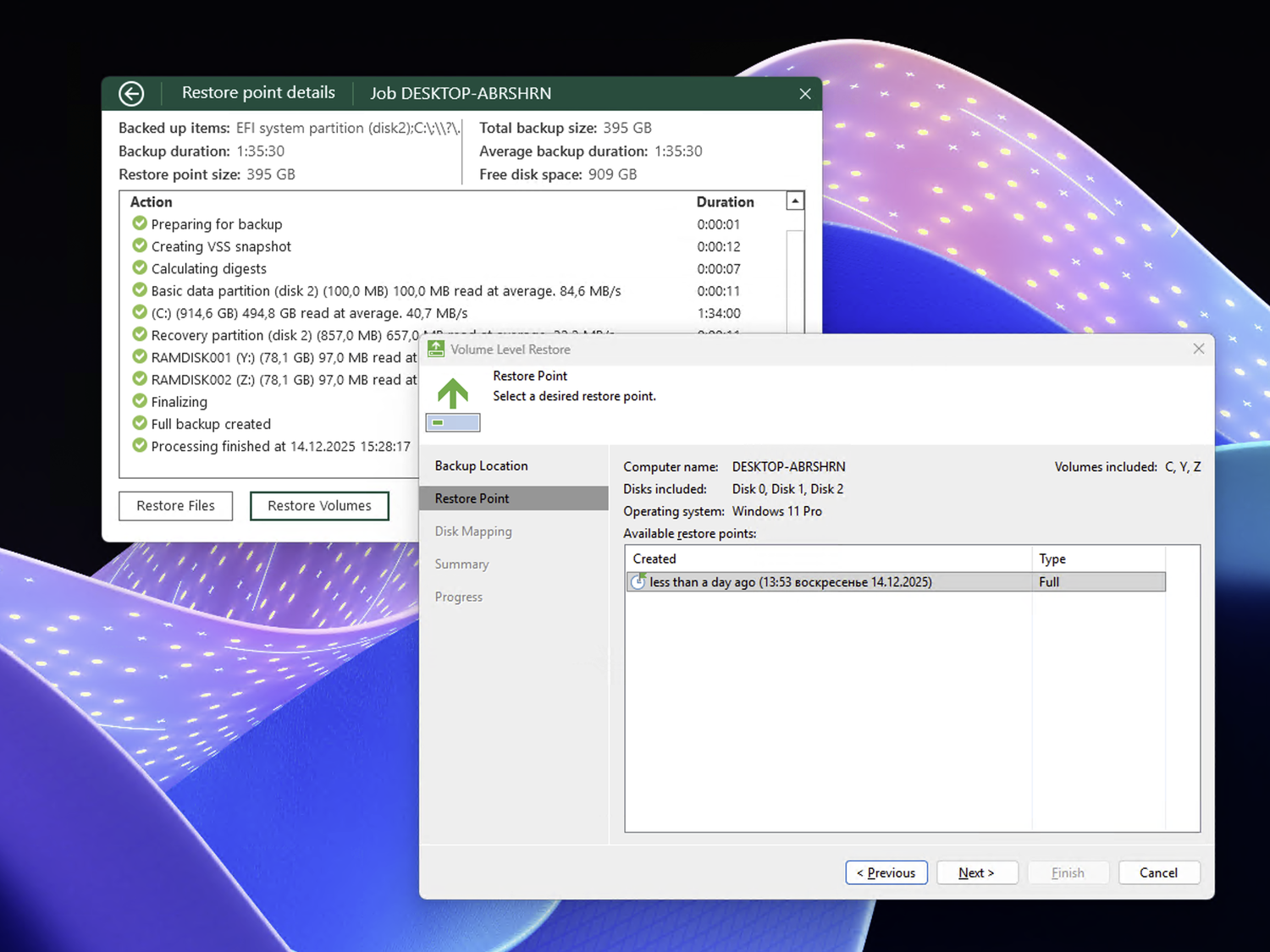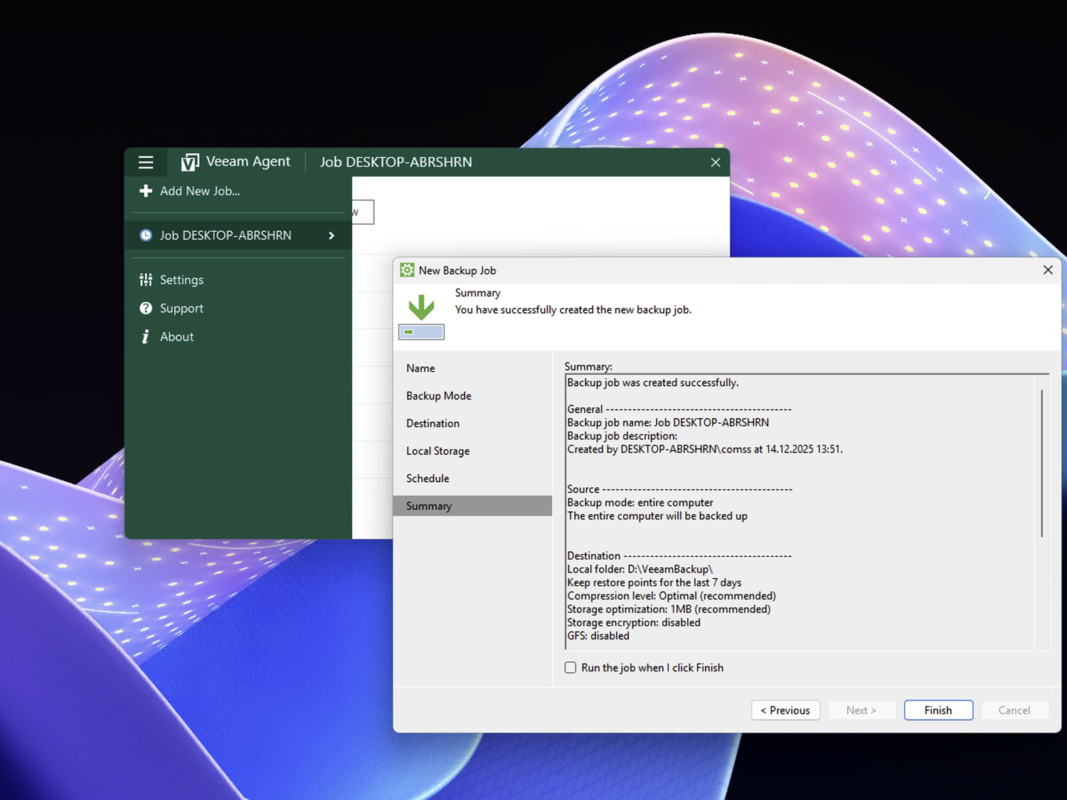 Скриншоты Veeam Agent for Microsoft Windows (Free Edition)