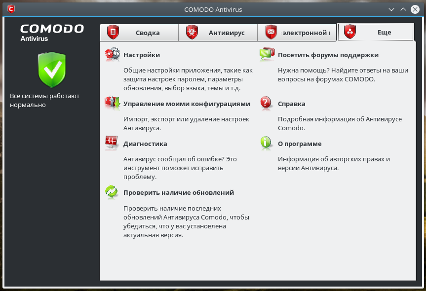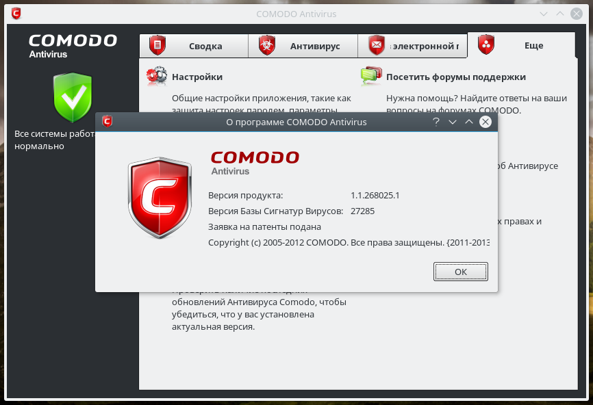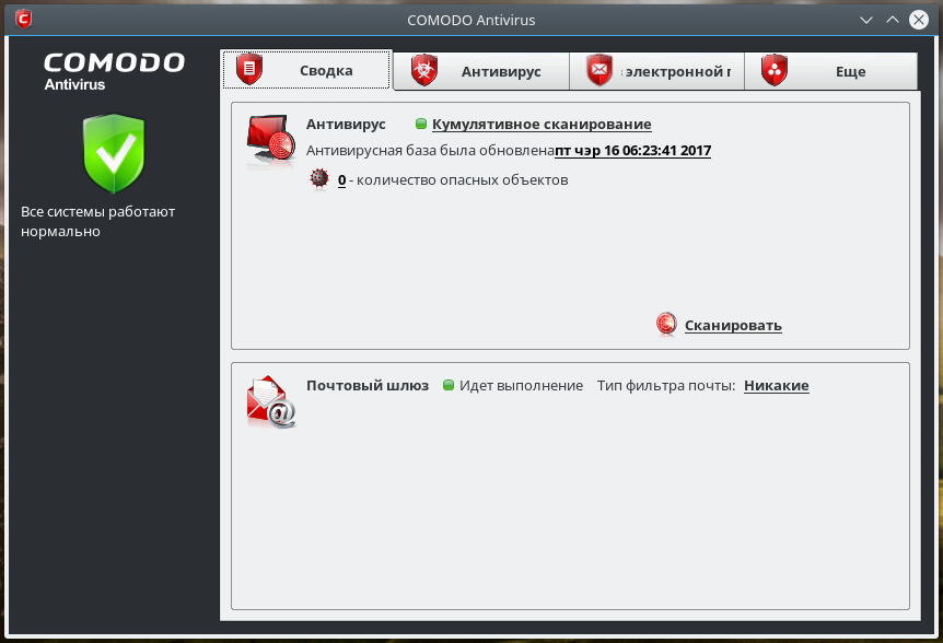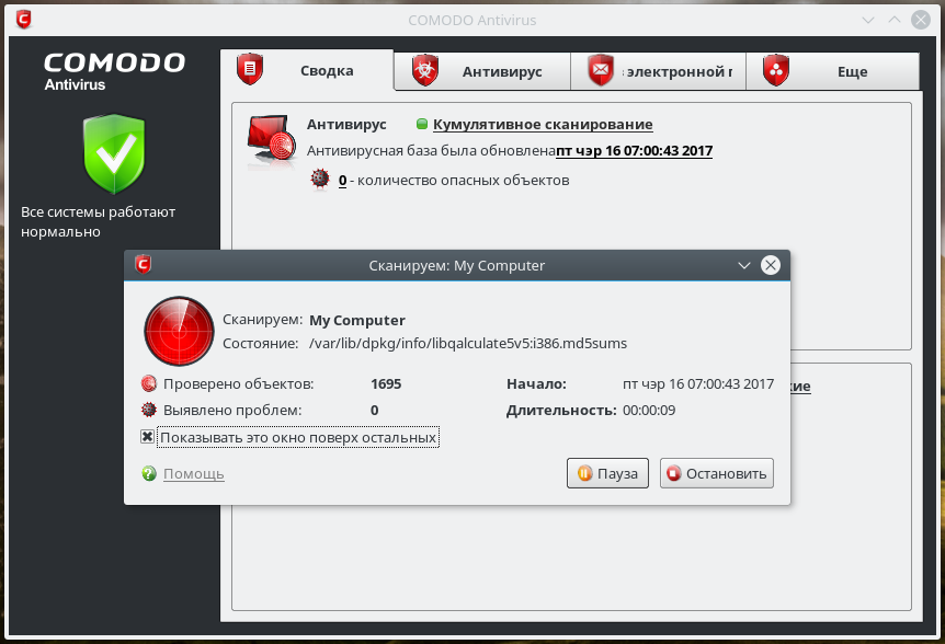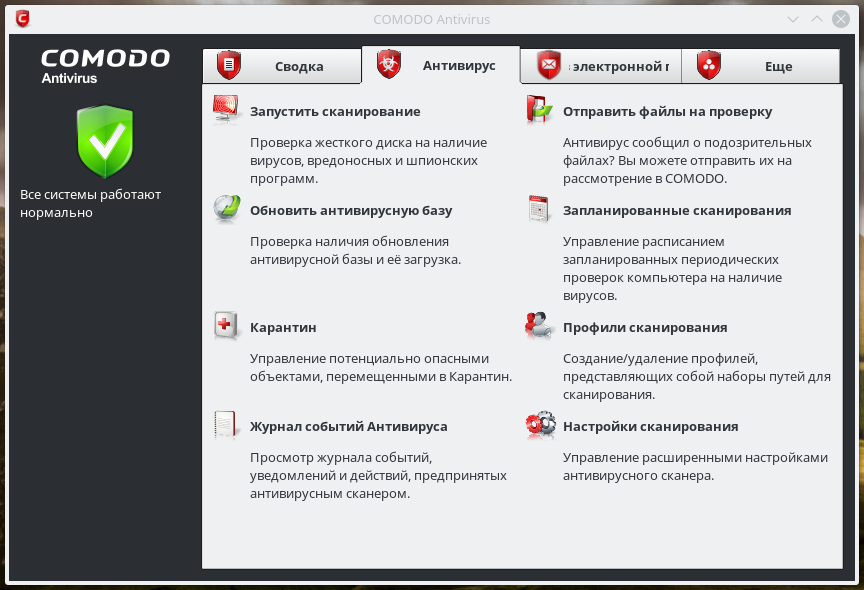 Скриншоты COMODO Antivirus for Linux