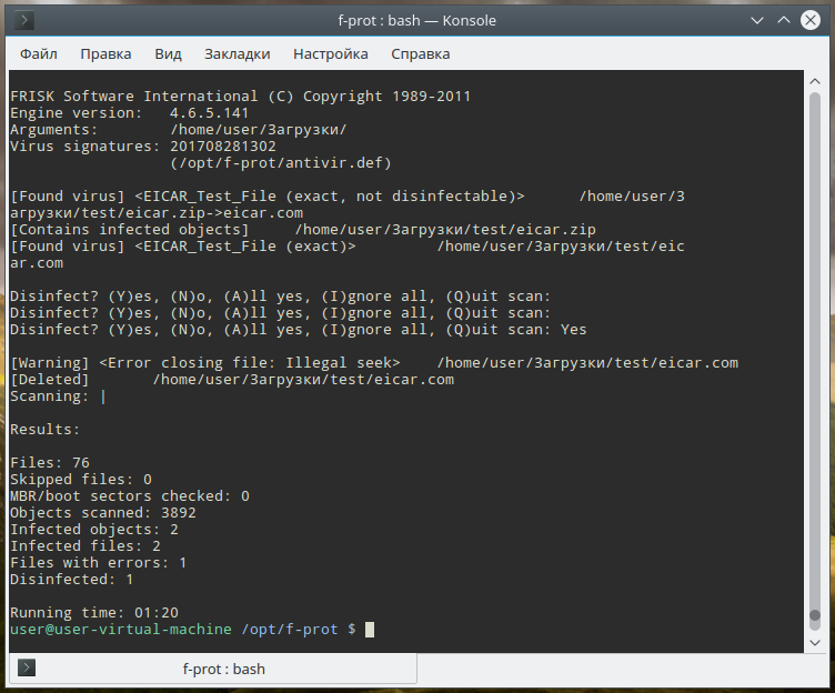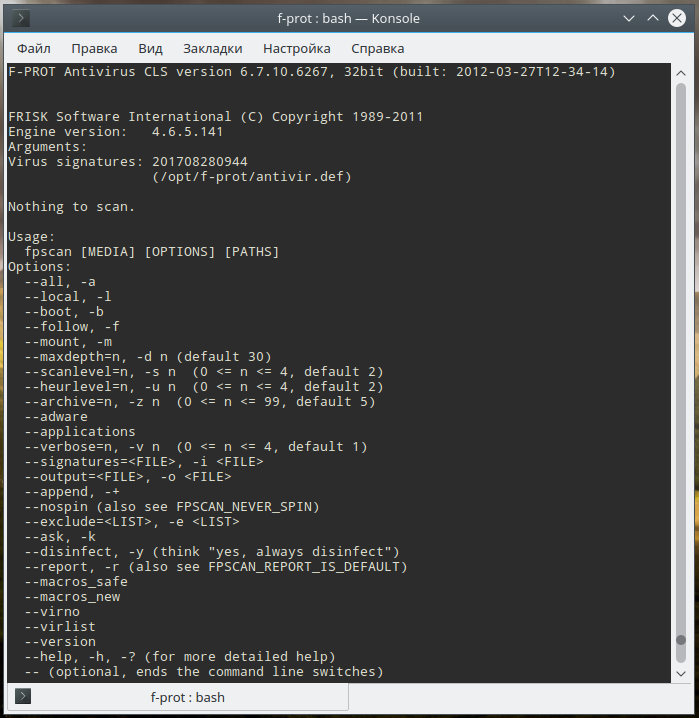 Скриншоты F-PROT Antivirus for Linux Workstation