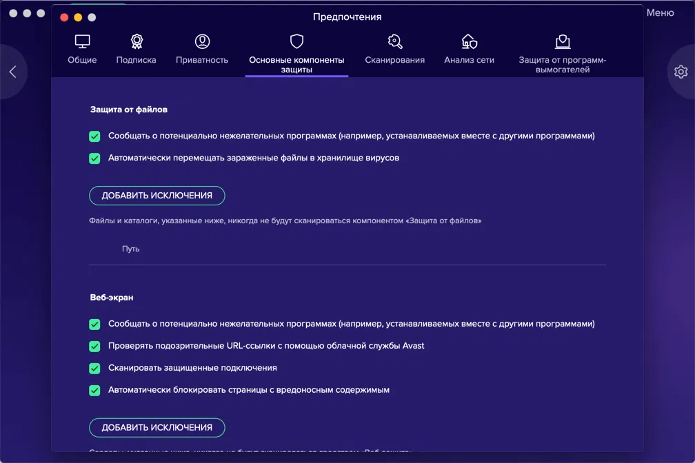 Скриншоты Avast Security для Mac