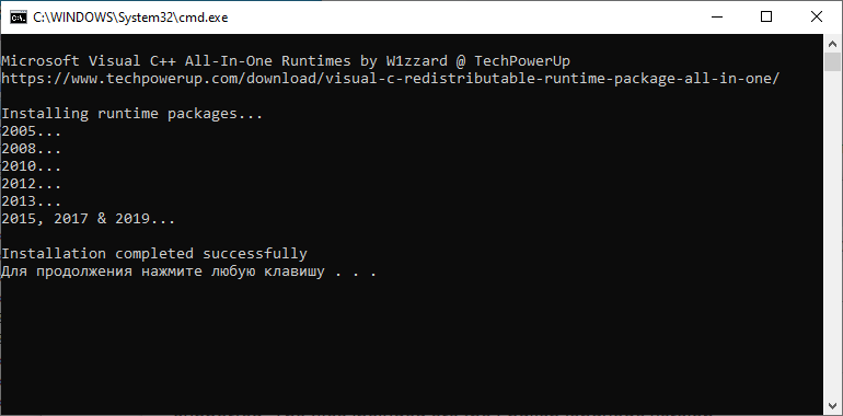 Скриншоты Visual C++ Redistributable Runtimes All-in-One