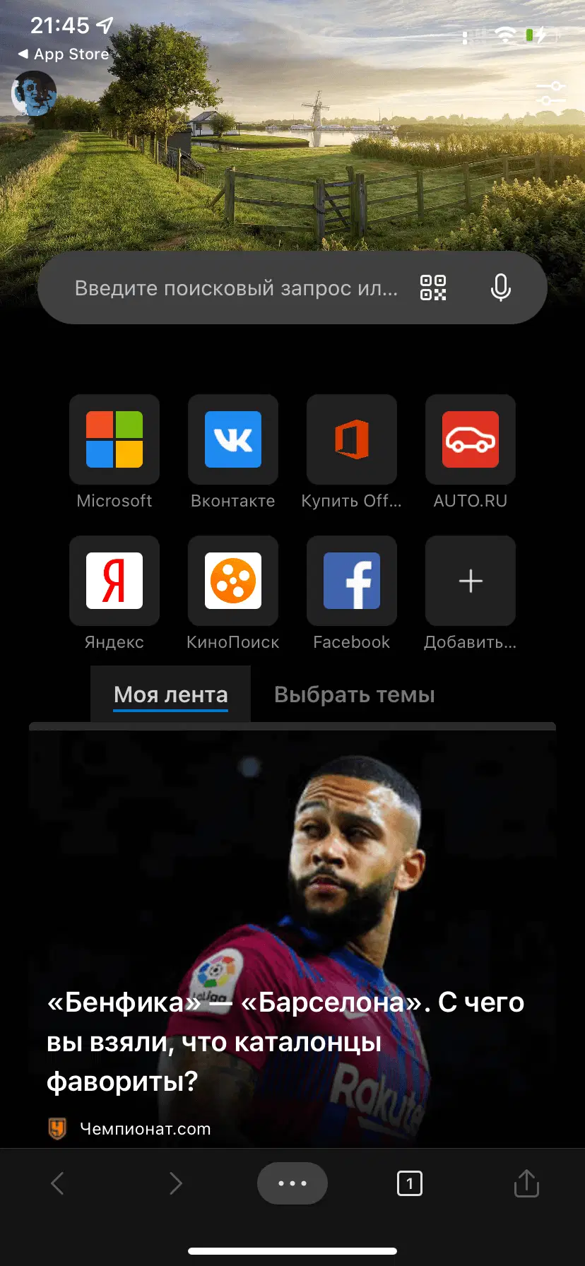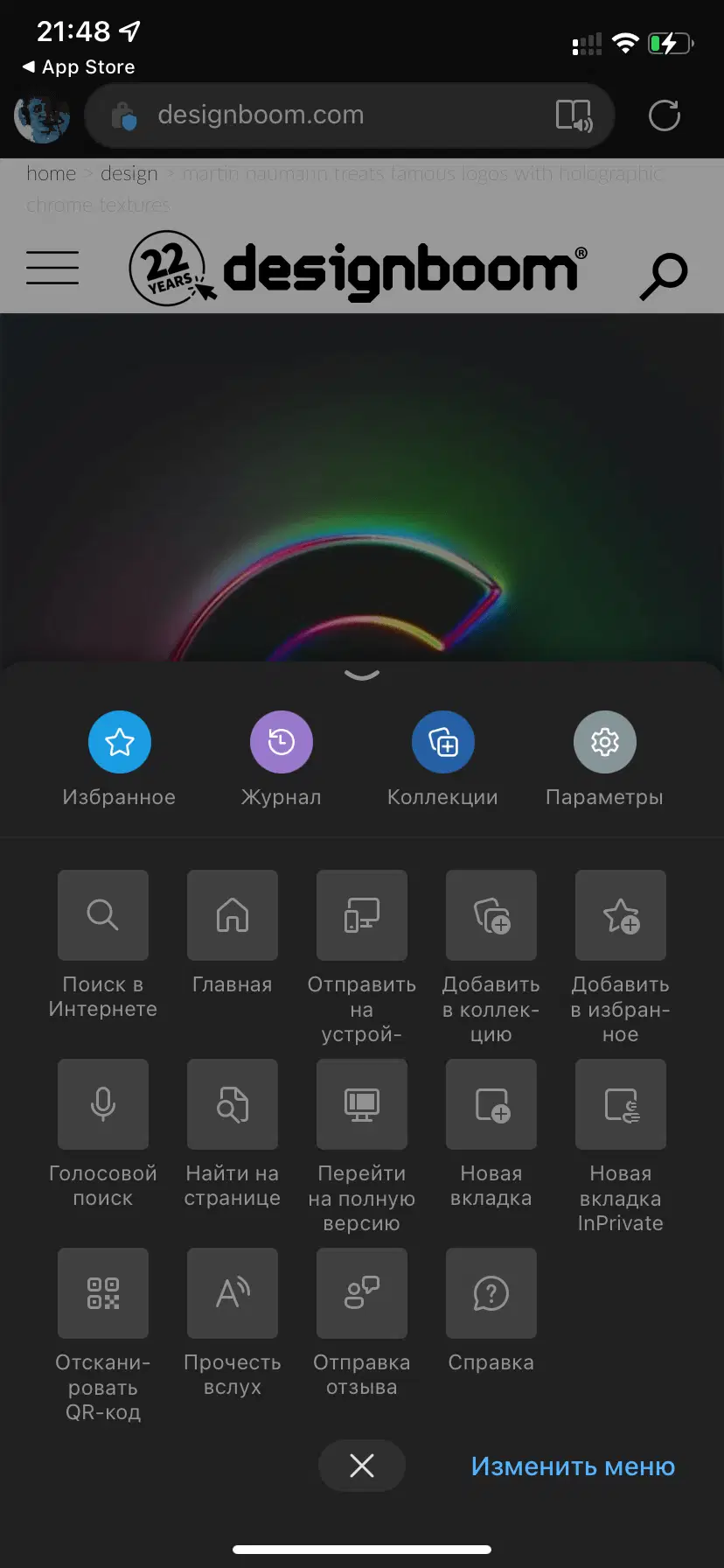 Скриншоты Microsoft Edge для iOS