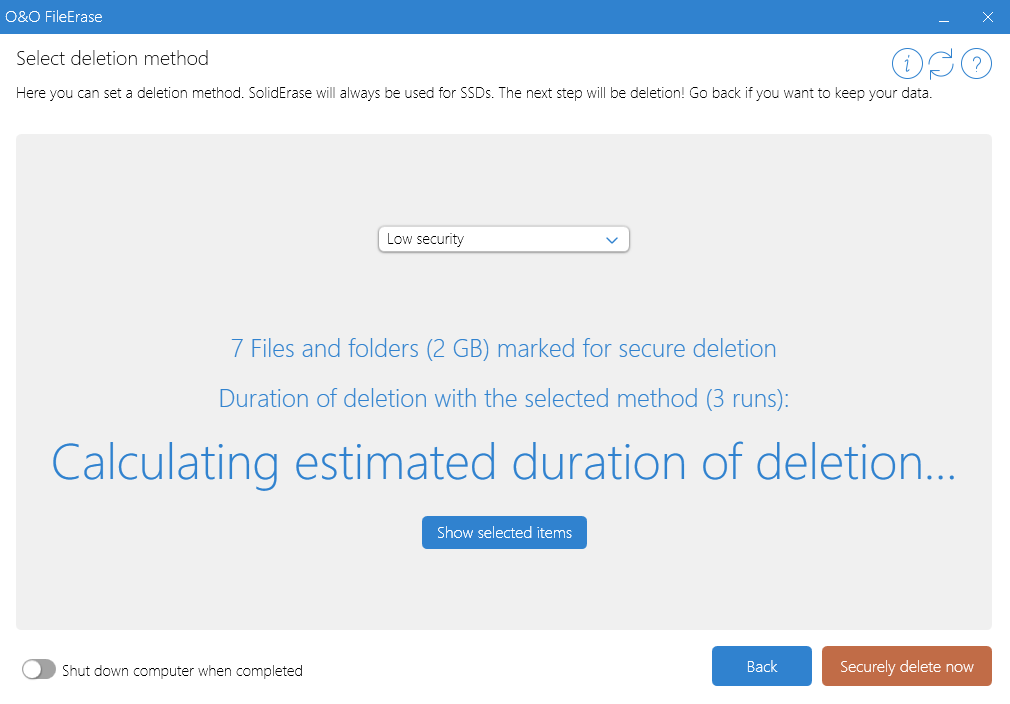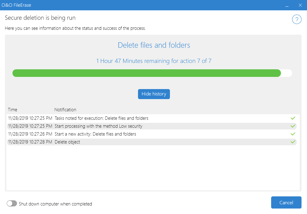 Скриншоты O&O FileErase