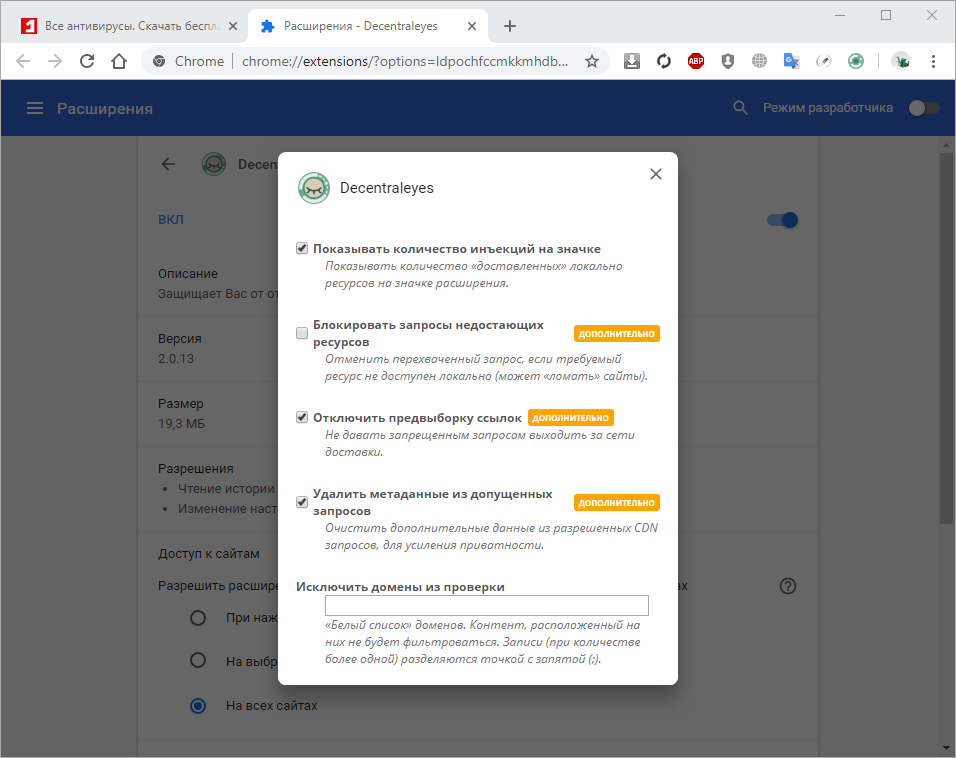 Скриншоты Decentraleyes