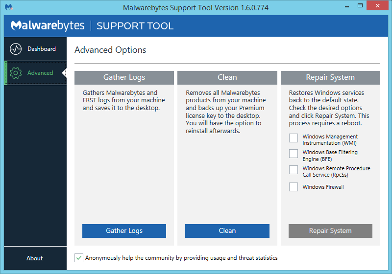 Malwarebytes Support Tool