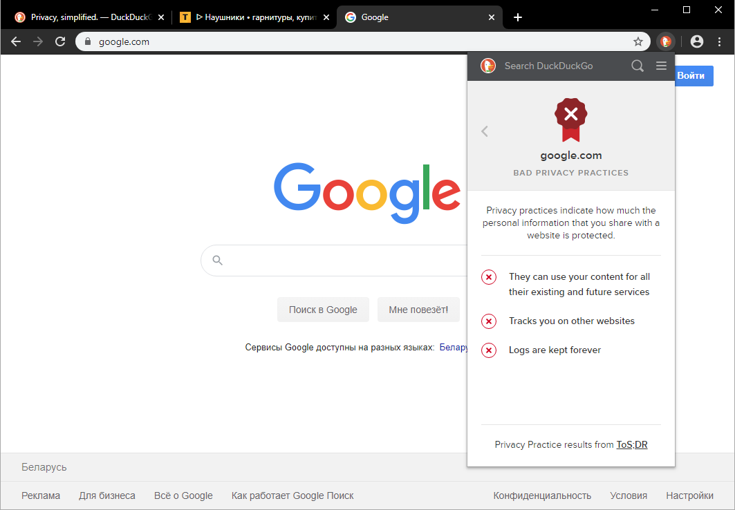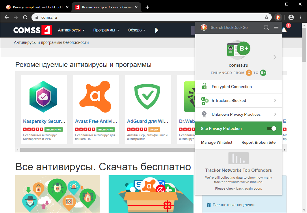 Скриншоты DuckDuckGo Privacy Essentials