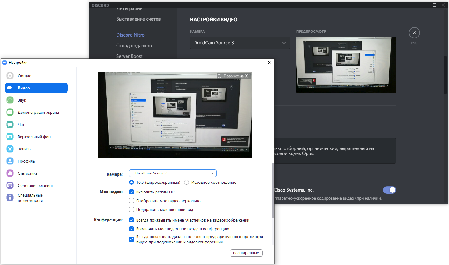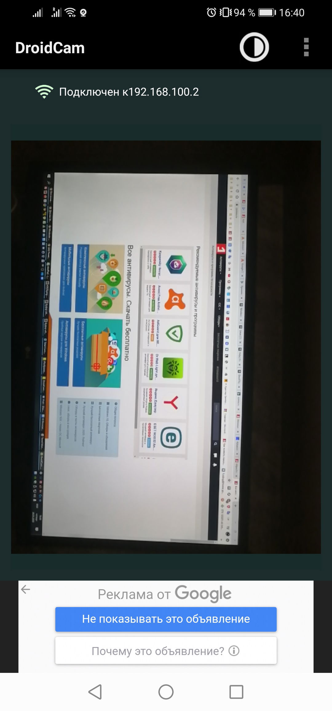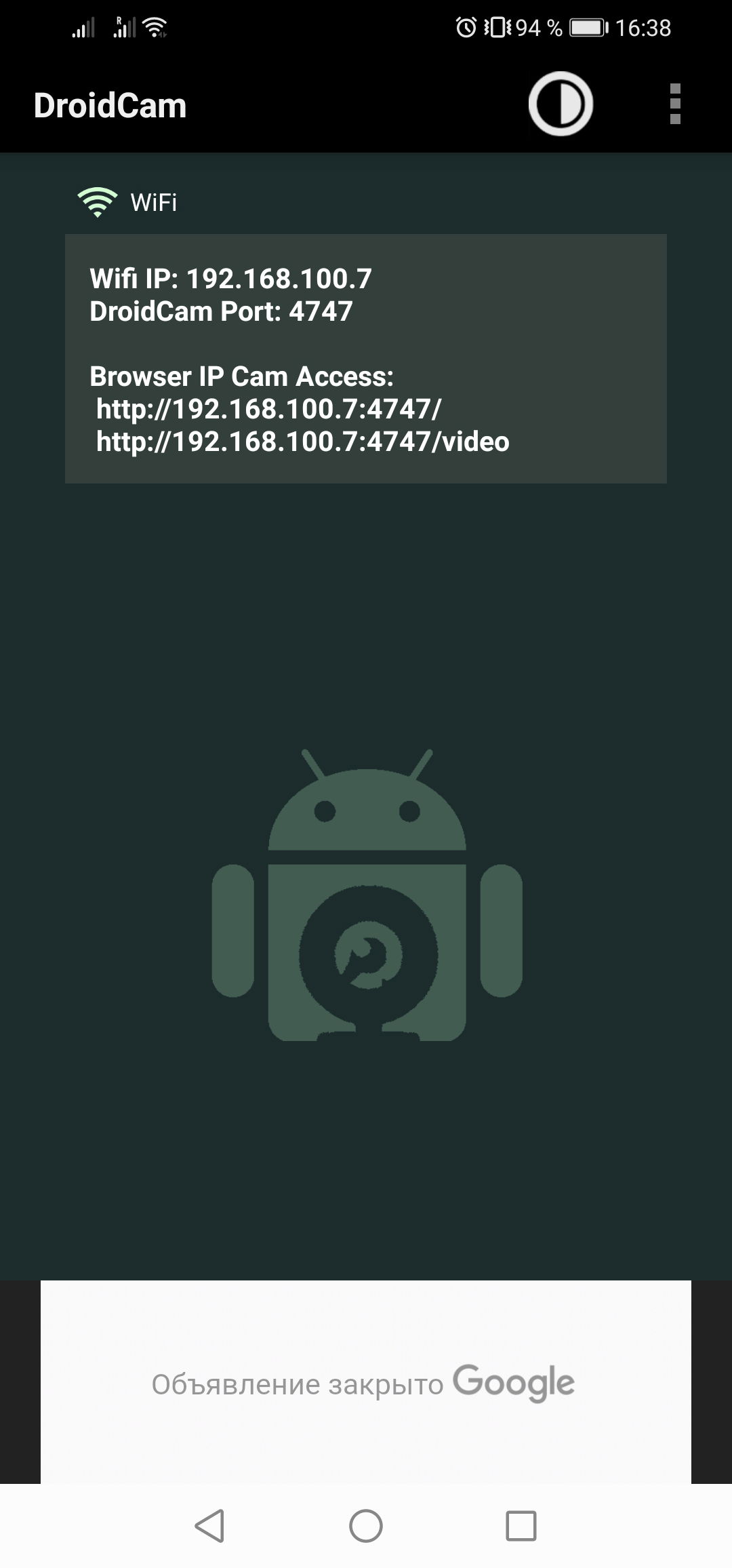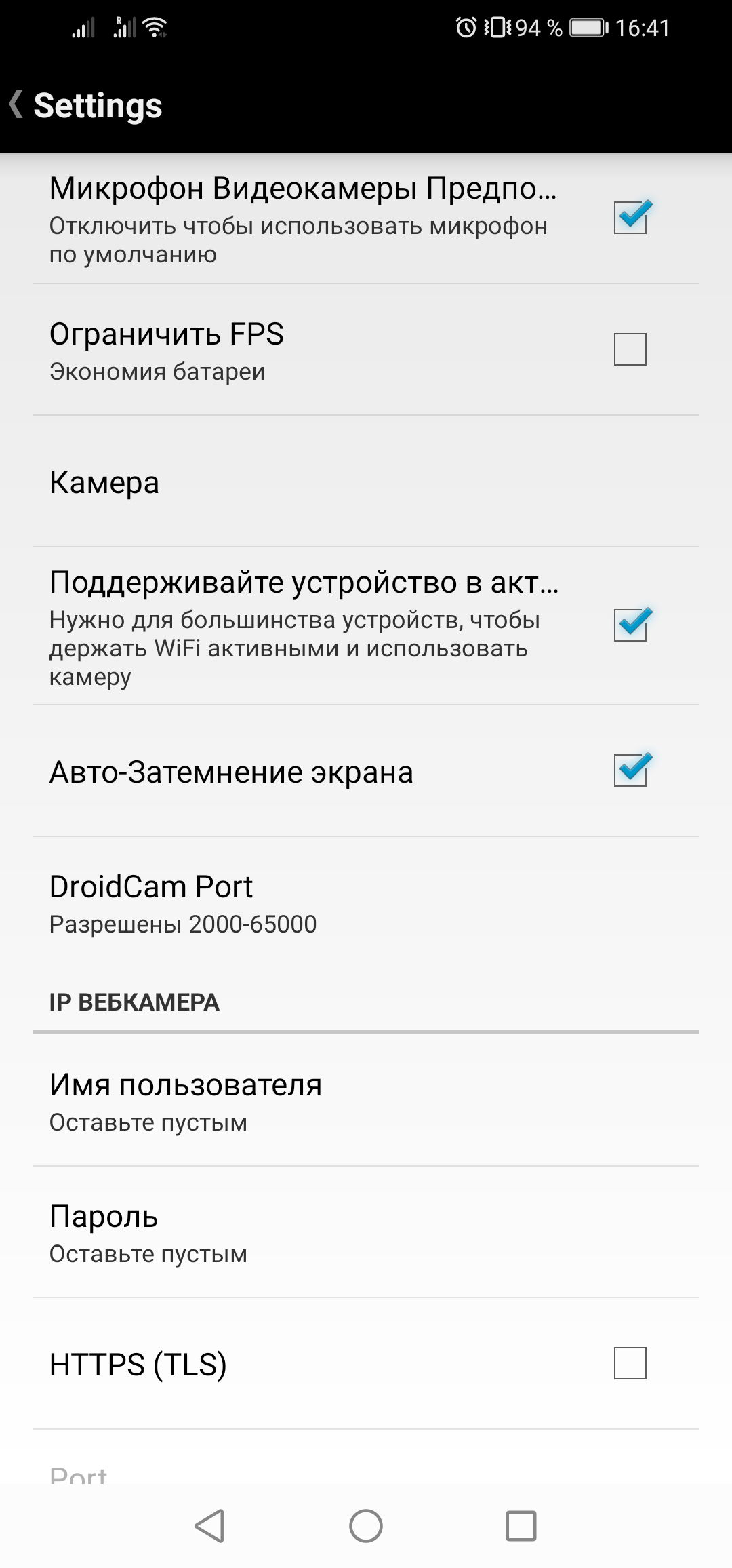 Скриншоты DroidCam