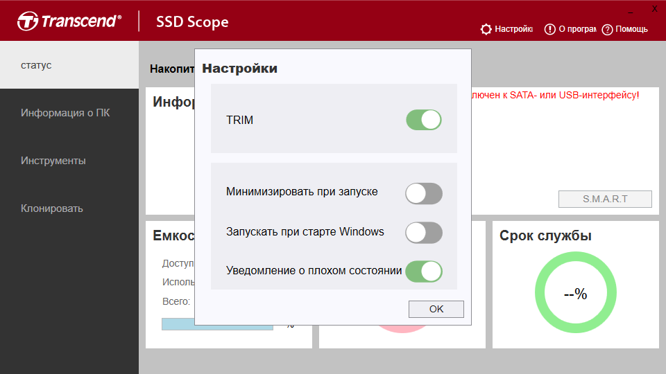 Скриншоты Transcend SSD Scope