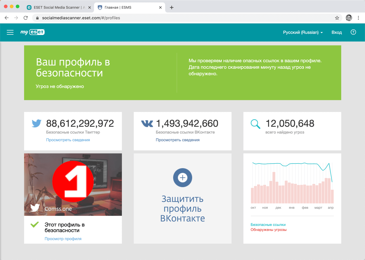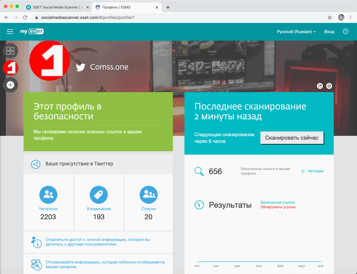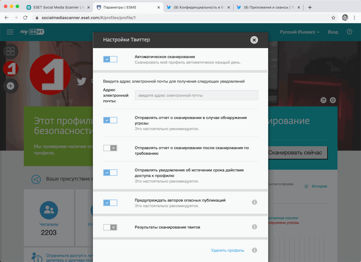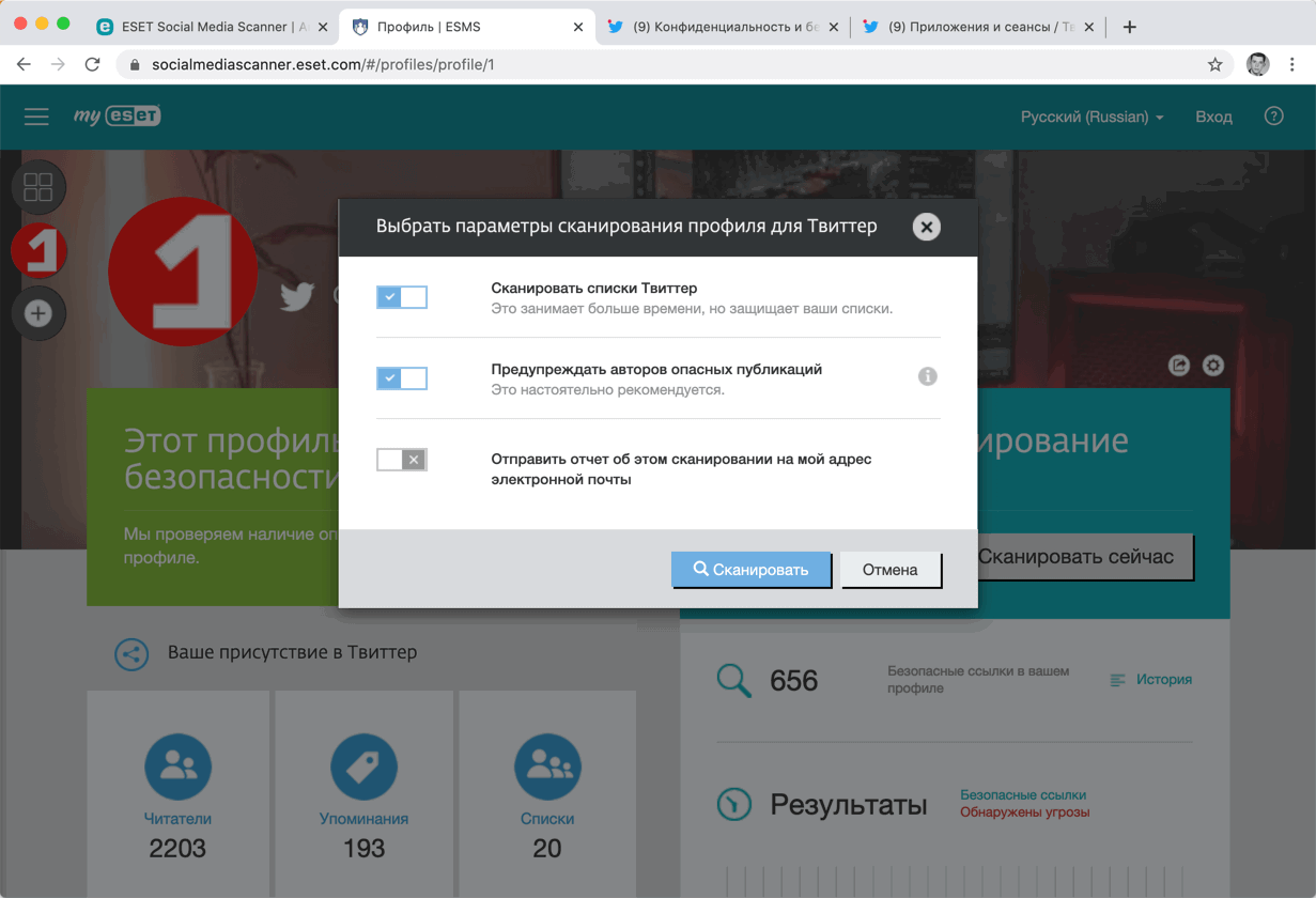 Скриншоты ESET Social Media Scanner [поддержка завершена]