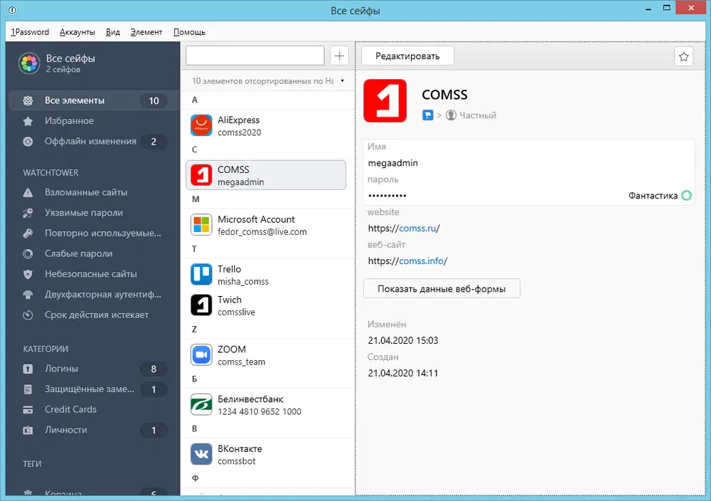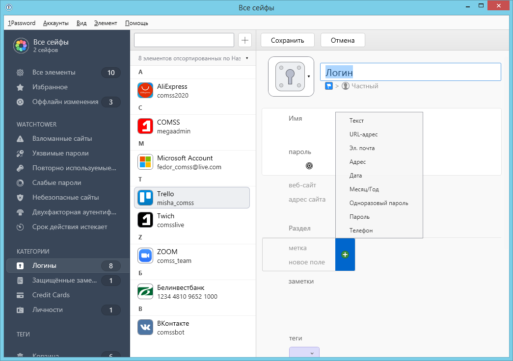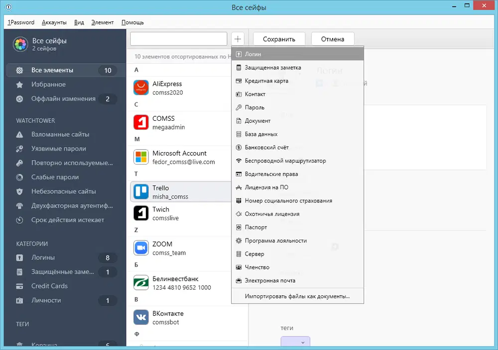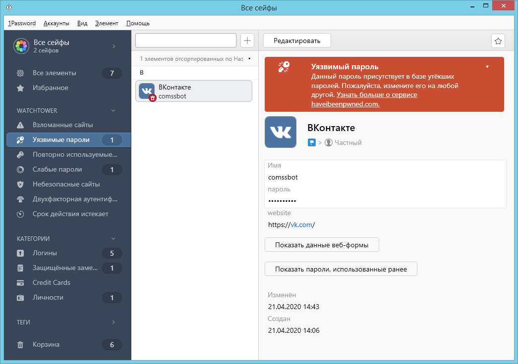 Скриншоты 1Password