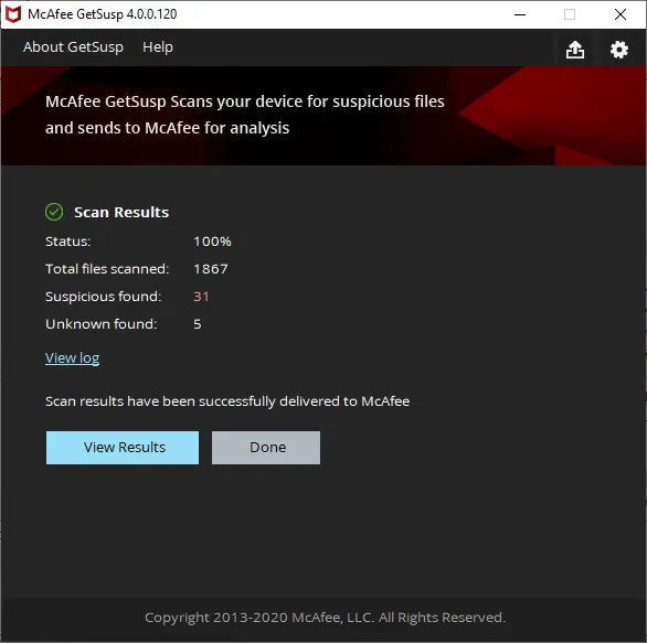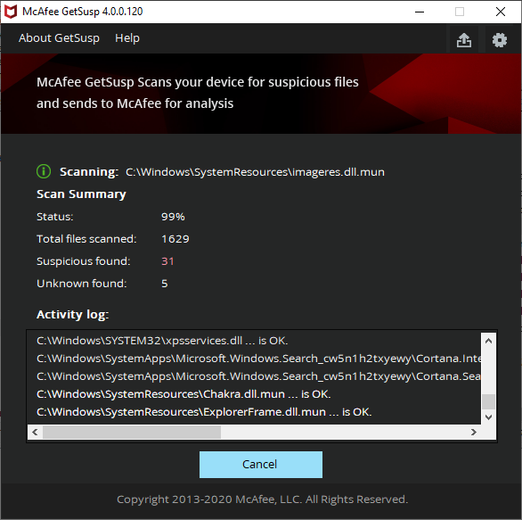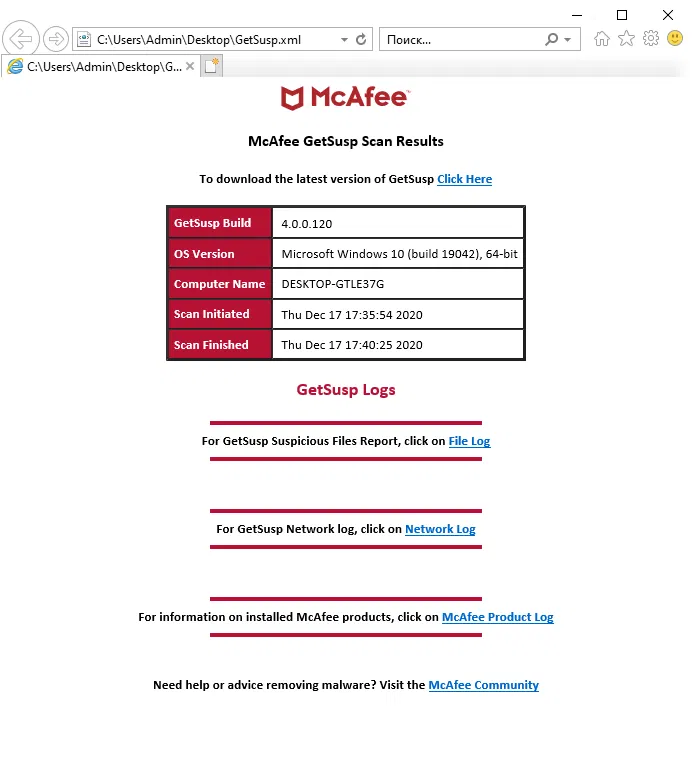 Скриншоты McAfee GetSusp