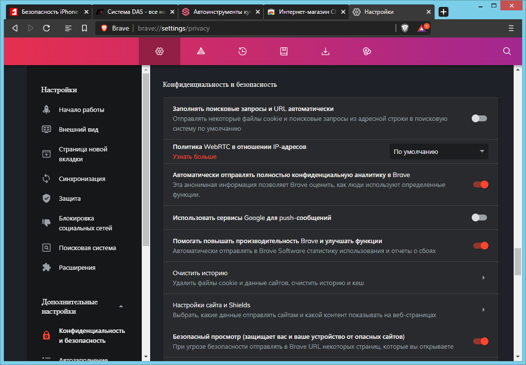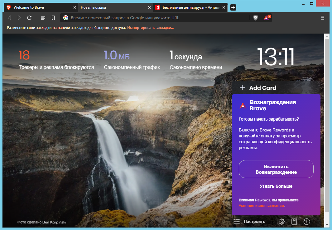 Скриншоты Brave Browser (Beta, Nightly)