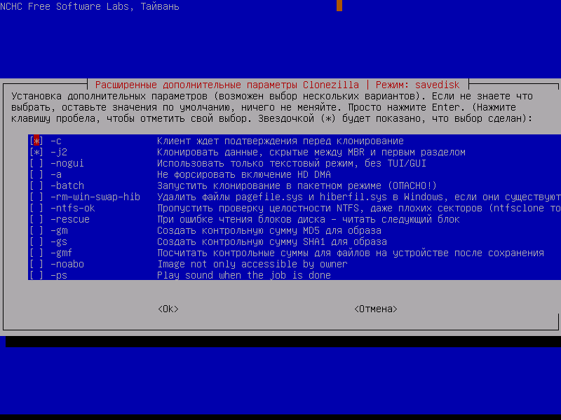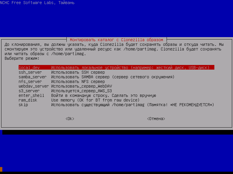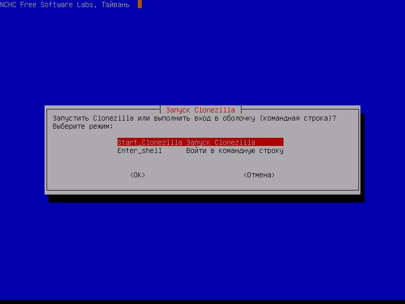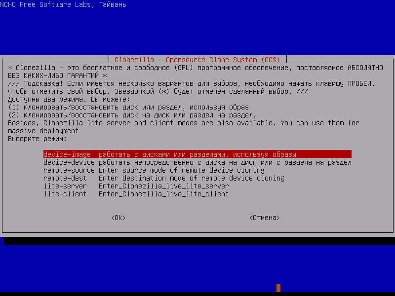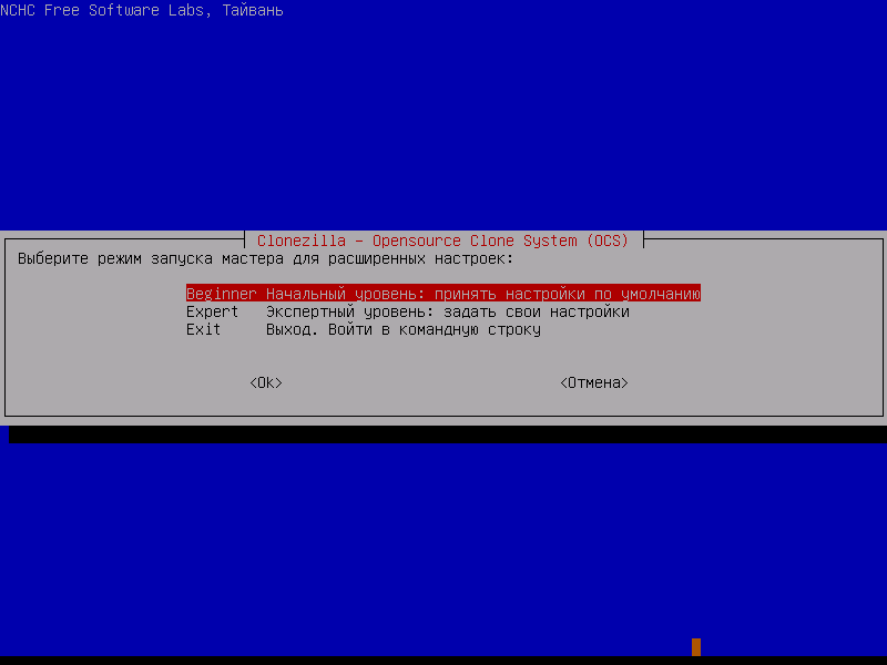 Скриншоты Clonezilla