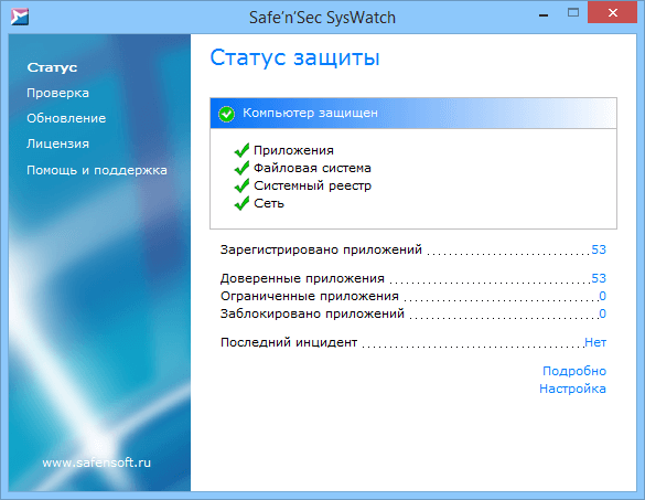 Скриншоты Safe’n’Sec SysWatch