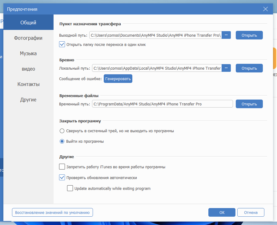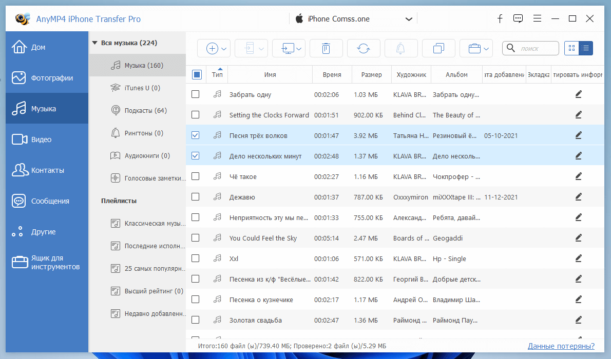 Скриншоты AnyMP4 iPhone Transfer Pro