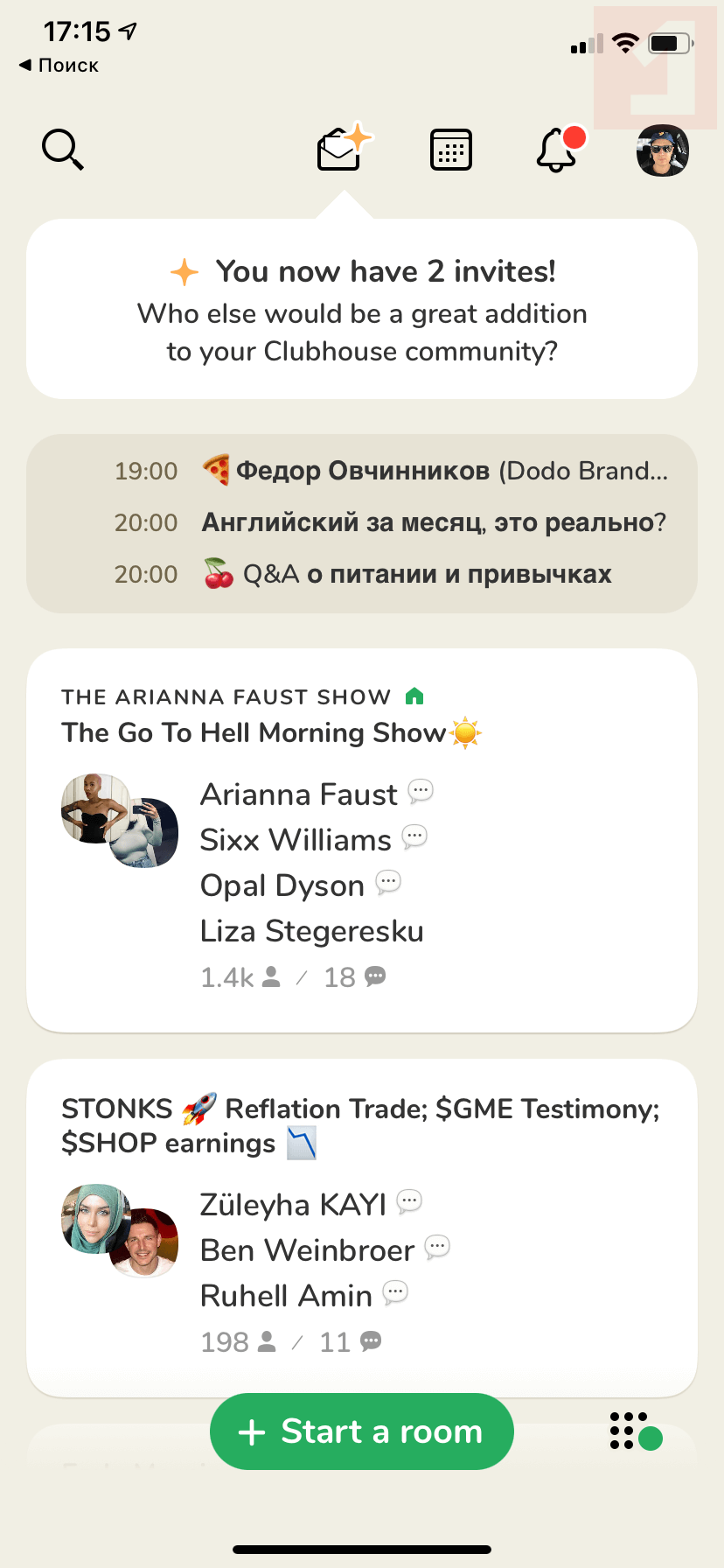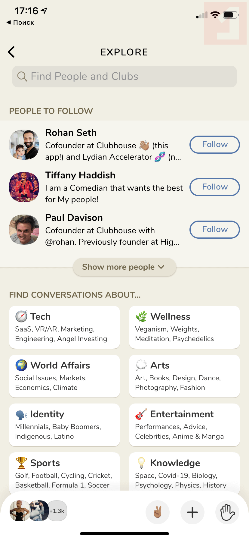 Скриншоты Clubhouse