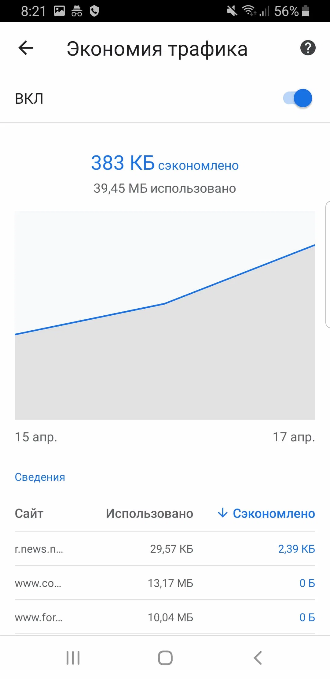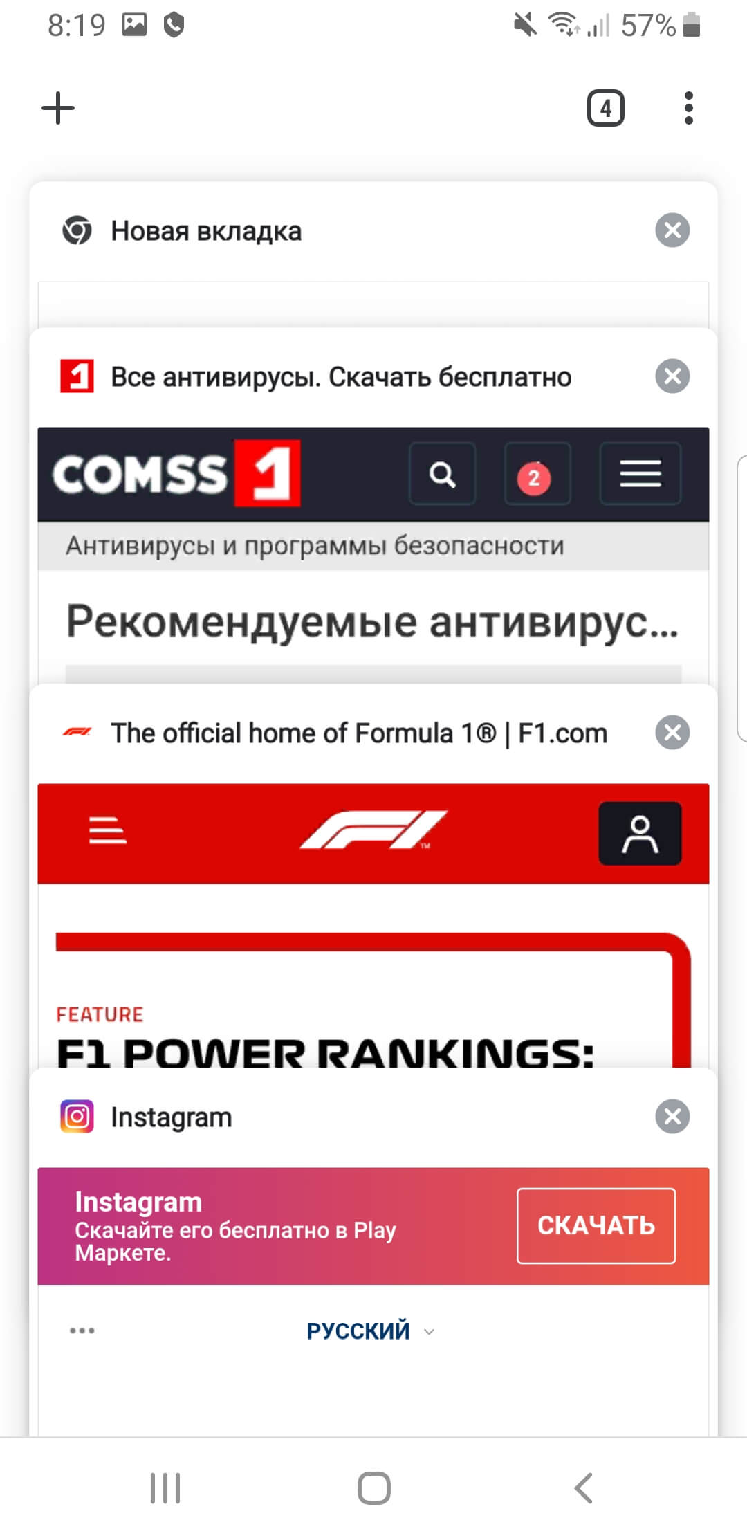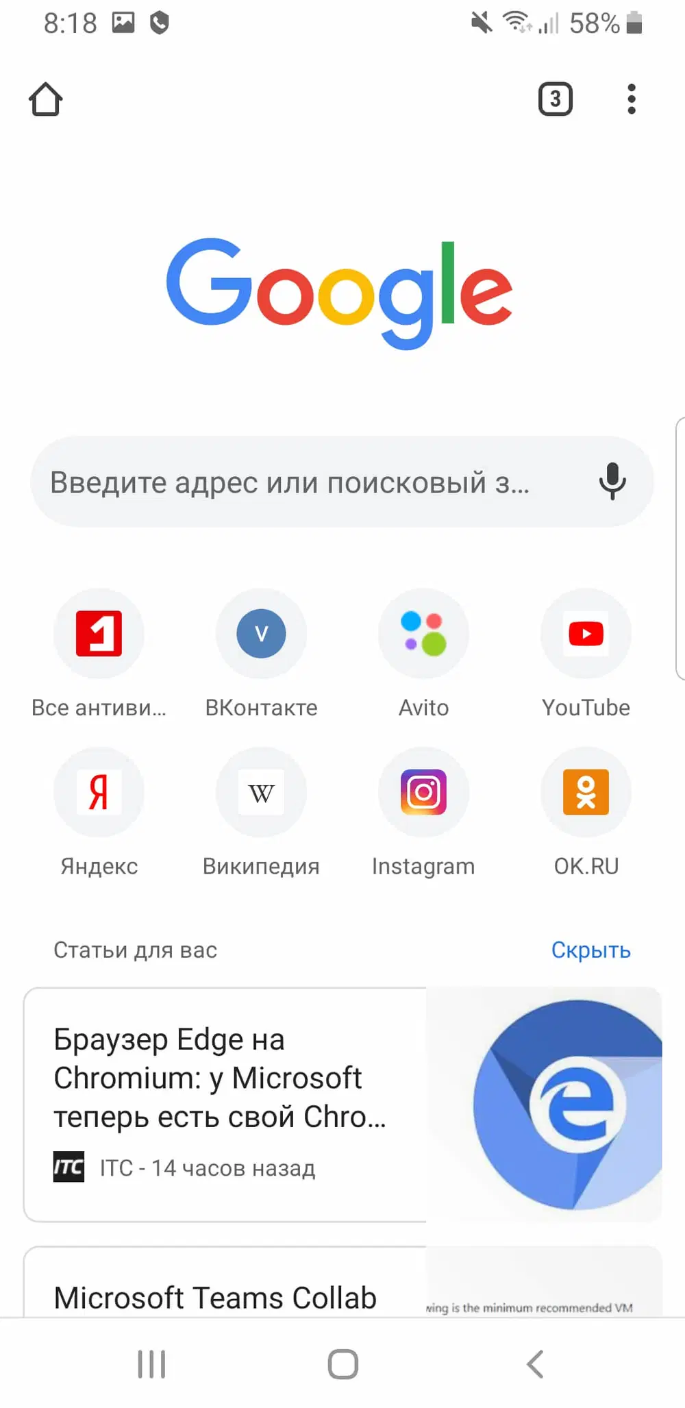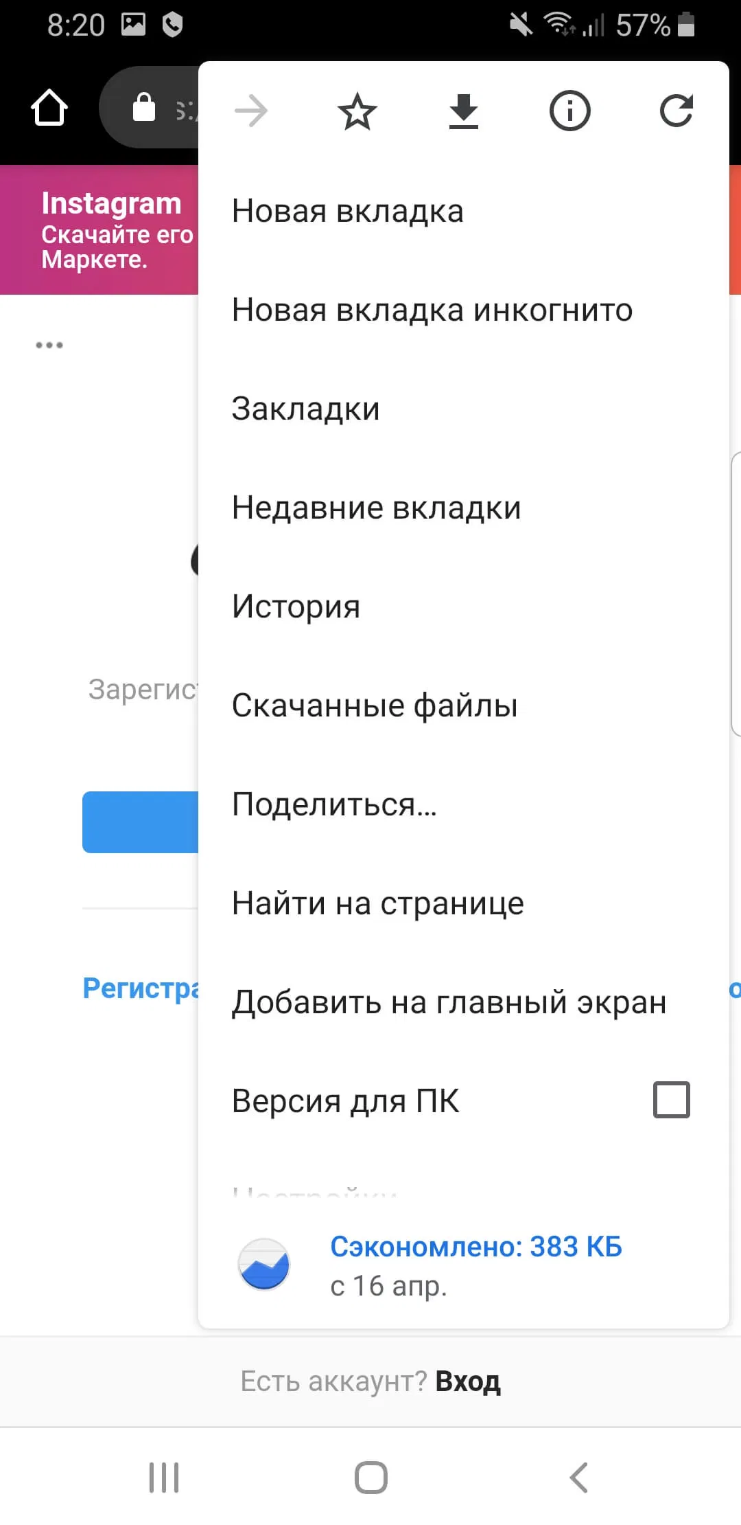 Скриншоты Google Chrome для Android