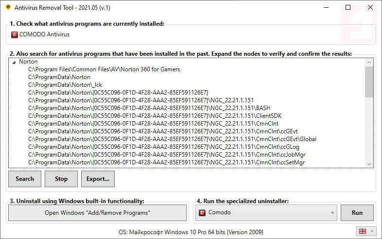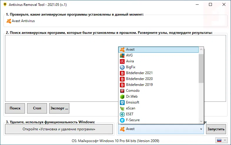 Скриншоты Antivirus Removal Tool
