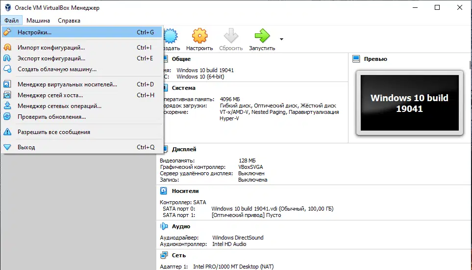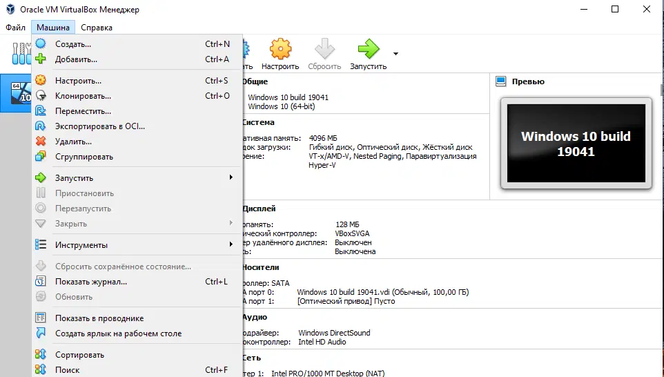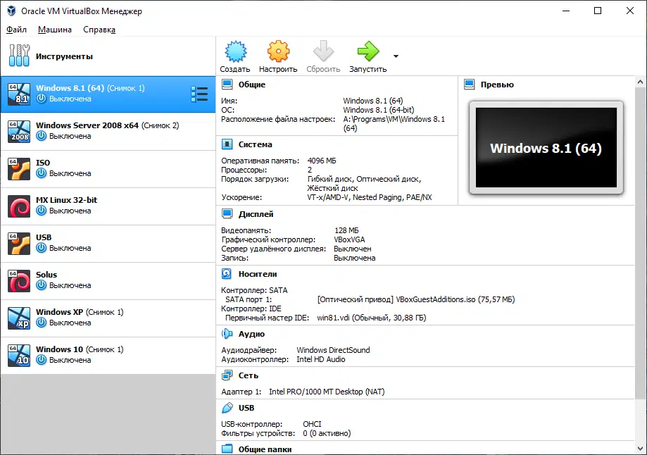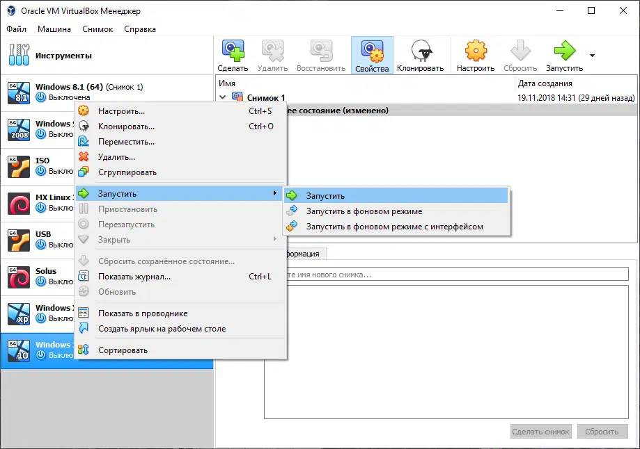 Скриншоты Oracle VM VirtualBox