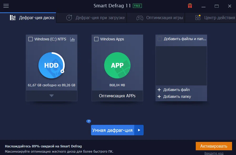 Скриншоты IObit Smart Defrag