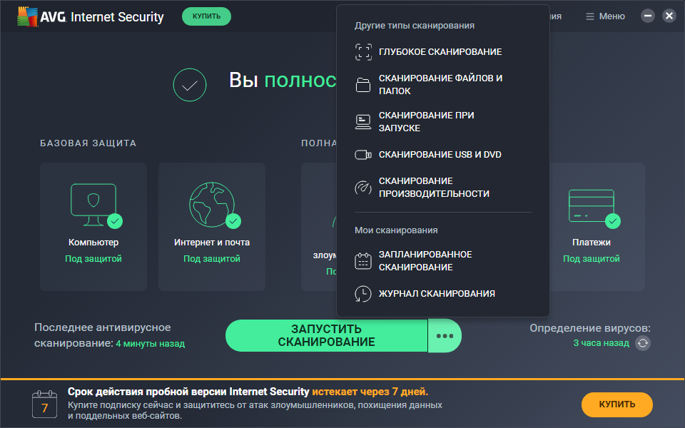 Скриншоты AVG Internet Security