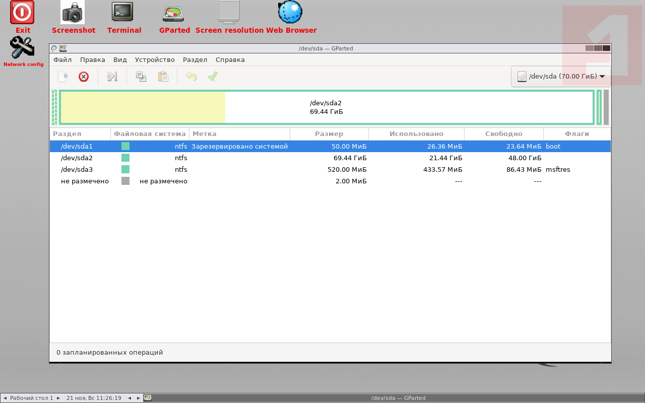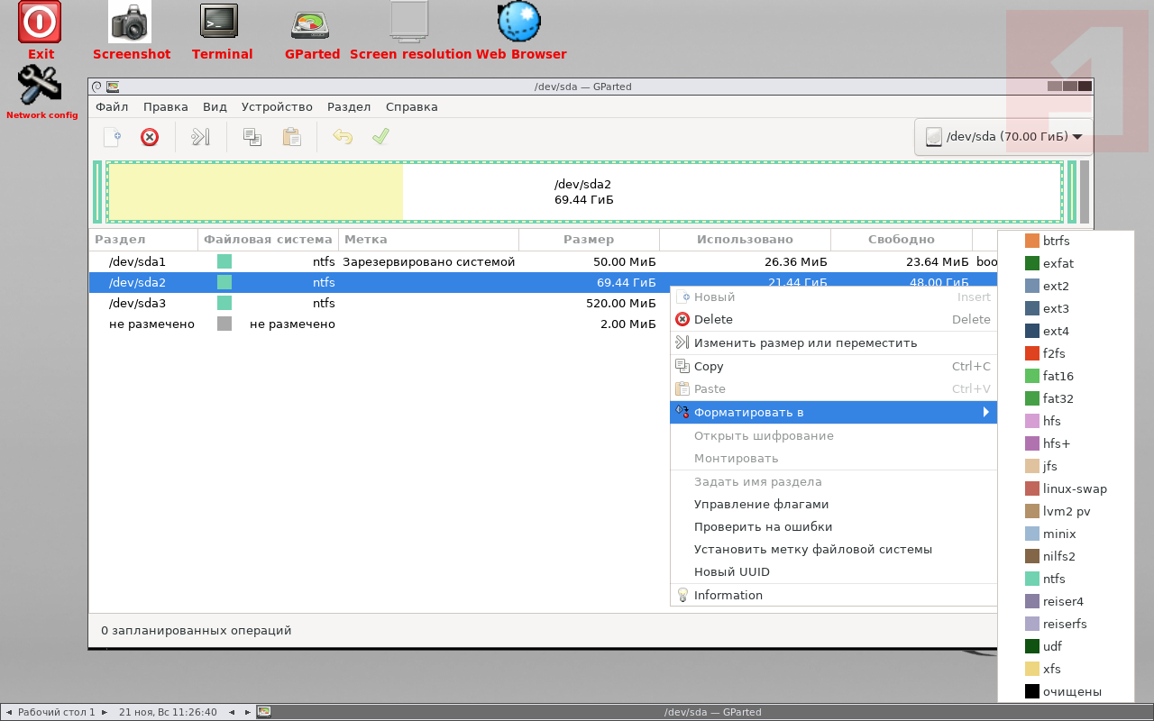 Скриншоты GParted